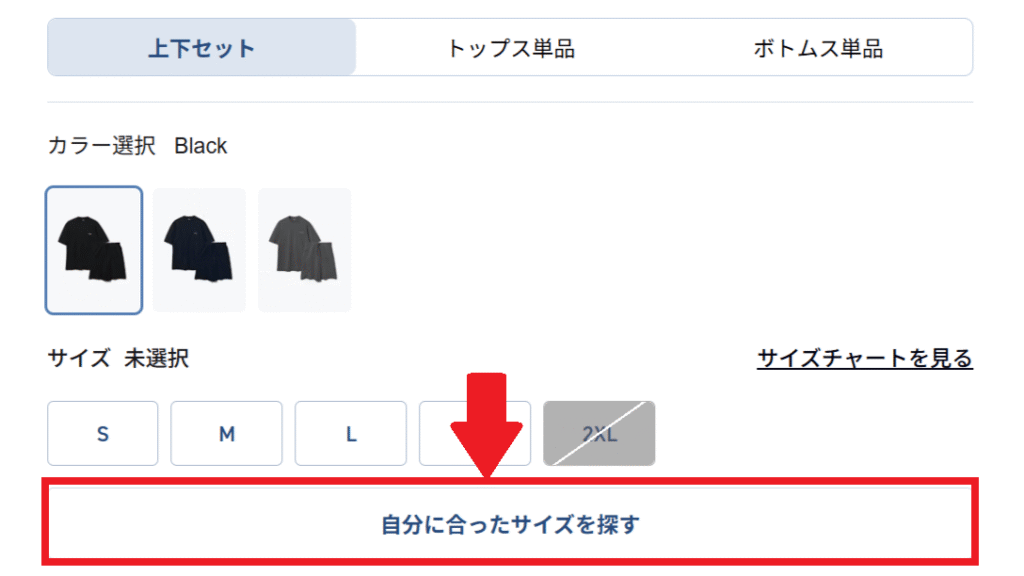 公式サイトの「自分に合ったサイズを探す」を確認する