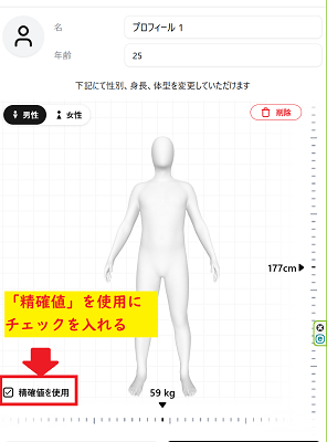 たとえば、身長177㎝、体重59㎏の痩せ型の場合はSサイズが推奨されました。肩幅・身幅・ウエストごとにサイズ感も確認できるので、「ちょっとゆったり着たい」「フィットさせたい」など好みに合わせてサイズを比較しながら選べます。