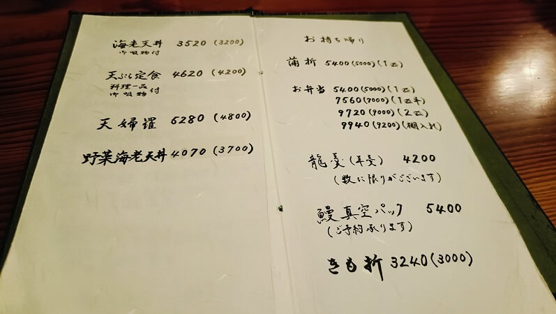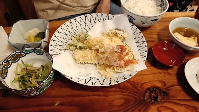 一緒に行った母はうなぎが元々苦手なので、天ぷら定食を注文しました。天ぷらはエビやししとう、なすなど盛りだくさんでした。